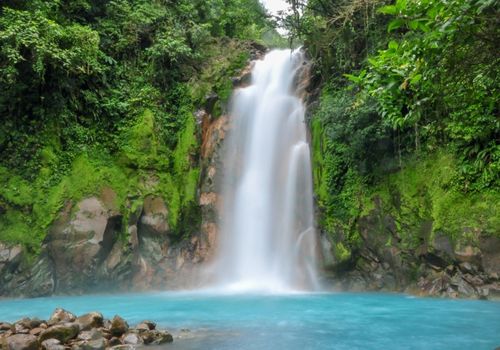 La jornada incluye una caminata guiada por los mágicos senderos del Parque Nacional Tenorio, donde el Río Celeste y su cascada icónica deslumbran con su belleza surrealista. Tras un día de descubrimientos, nos relajamos en el exclusivo Rio Celeste Hideaway Resort, que combina lujo y sostenibilidad, elegido por su servicio excepcional y su integración con elentorno natural.